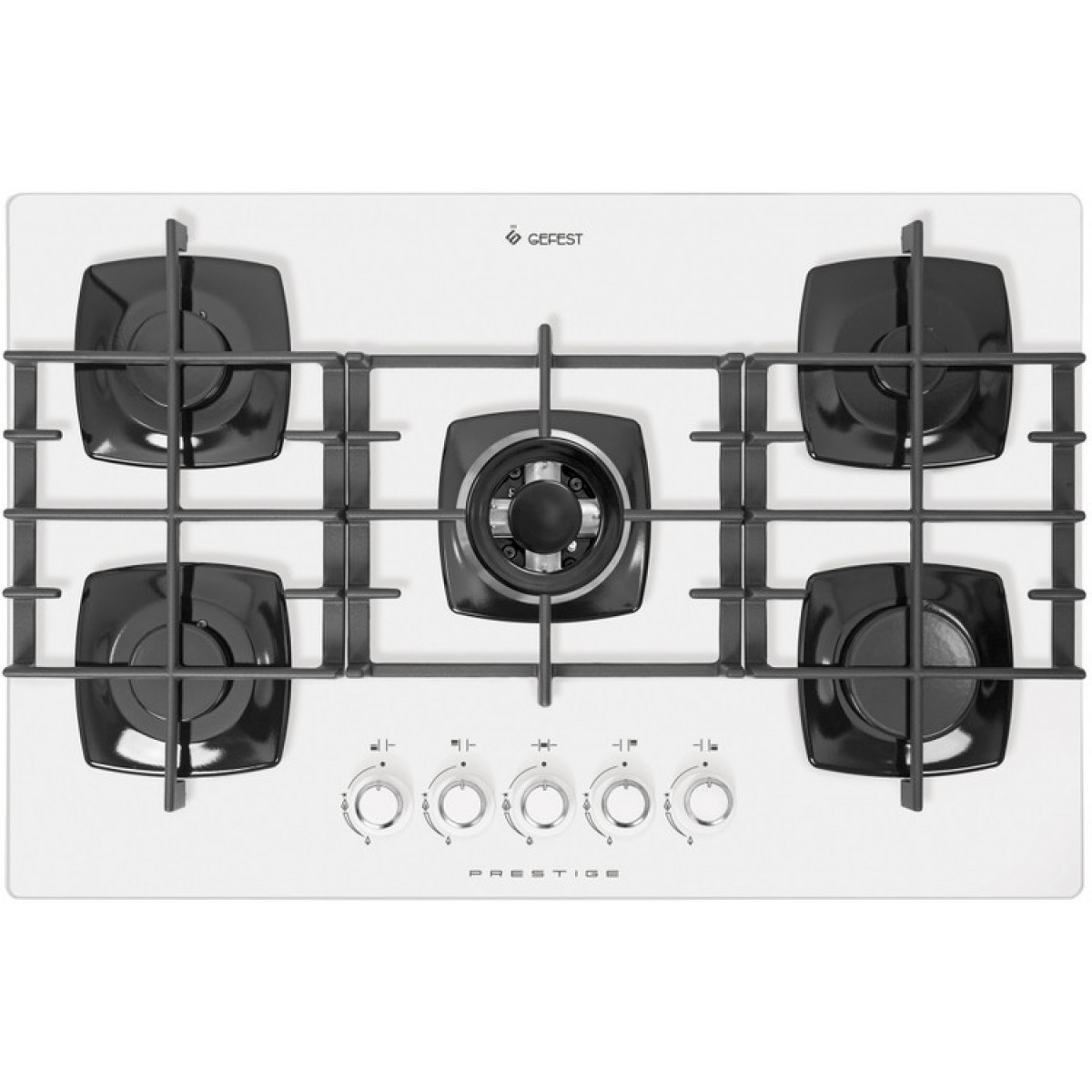 Şüşə səthi və 5 brülörlü, eni 80 sm olan bir qaz sobası. şüşənin ağ rəngi bəzədilmiş idarəetmə elementləri və çuqun qıvrım kompozit ızgaraları ilə təsirli şəkildə birləşdirilir. Bütün brülörlər elektriklə yandırılır (fırlanan düymələrə inteqrasiya olunur) və Qaz Nəzarəti ilə, iki orta brülör kiçik (iqtisadi) və böyük ölçülü, sürətli istilik ilə tamamlanır. Ortada iki zonalı bir brülör var. Güclü alov tez bir zamanda böyük bir su qabını qaynatın və qazan və tava tam istifadə etməyə imkan verir.